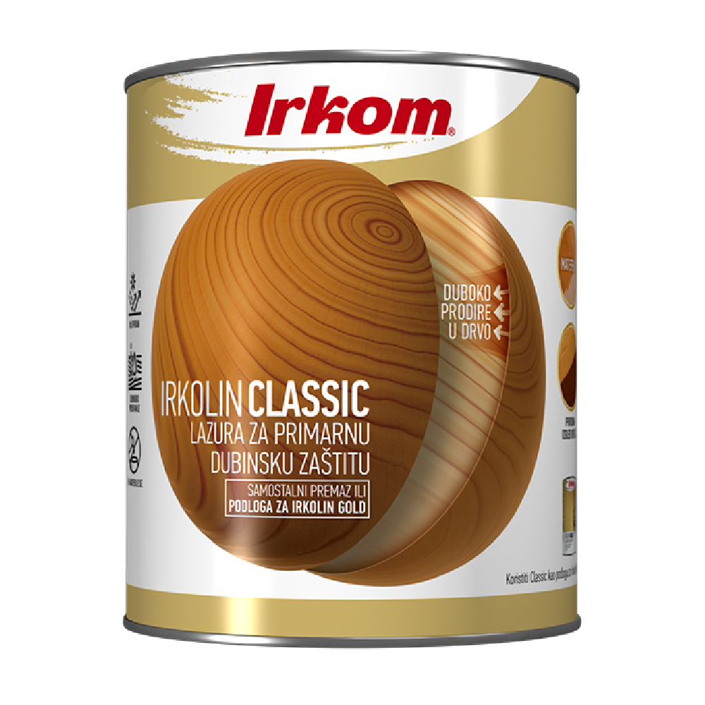 Irkolin Classic obavezno treba mešati, nikako mućkati. Mućkanjem se stvaraju mehurići koji će prouzrokovati defekte u premazu. Dakle, lazura se obavezno meša, izuzetno je tečna i pigment koji sadrži u osetnoj količini, relativno brzo se taloži na dnu posude, tako da boju obavezno treba dobro promešati pre upotrebe, a tokom nanošenja, povremeno dodatno mešati, čime će se izbeći šarenilo na farbanoj drvenoj površini. Irkolin Classic nije potrebno razređivati.
