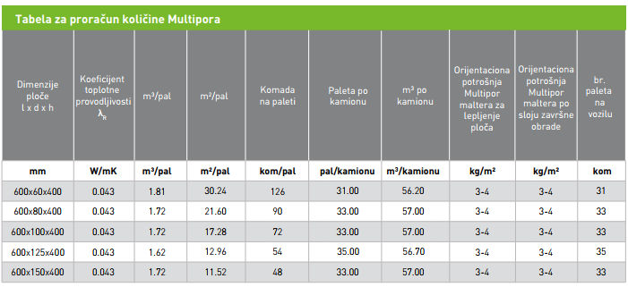 | Vezivni materijal | Potrošnja Multipor maltera za lepljenje ploča 3-4kg/m2 |