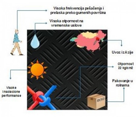 Gumeni podovi tipa “dijamant” imaju visoke performanse kada je u pitanju otpornost na vremenske uslove. Koriste se pristupne tačke sa visokom frekvencijom saobraćaja jer se lako čiste.