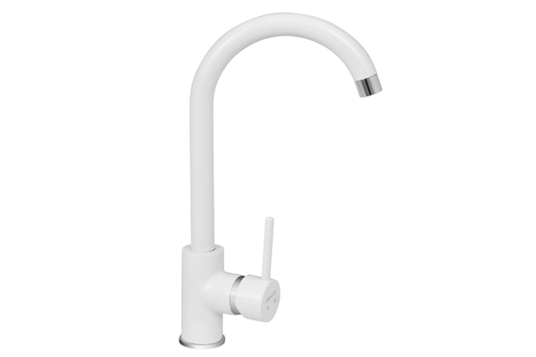 Jednoručna baterija za sudoperu sa 2 cevi – labud, bela boja – 6118-W