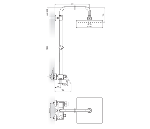- Tuš ruža D.220 mm sa zglobom – PTRUSP7