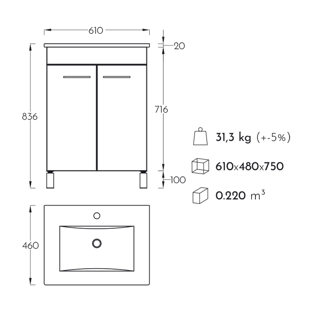 Kupatilski namestaj Tempo 60 Sa umivaonikom donji deo