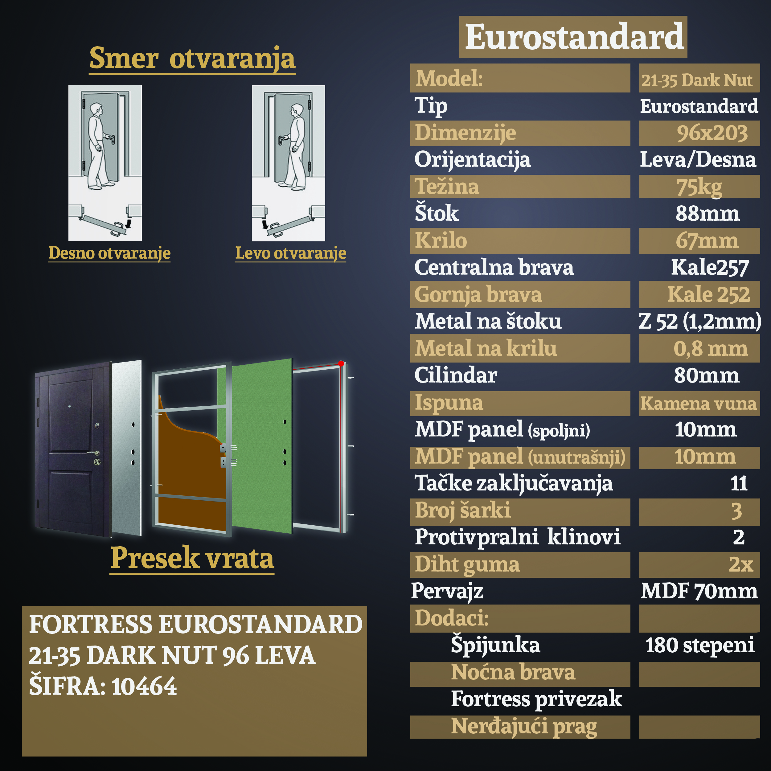 Sigurnosna Vrata Fortress Eurostandard 21-35 Dark Nut 96 Leva